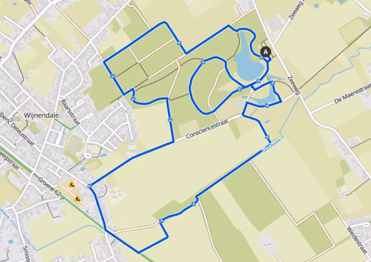 Het kasteel De Maere d'Aertrycke werd van 1868 tot 1871 in neogotische stijl gebouwd in opdracht van August de Maere, het kasteel draagt in de volksmond dan ook nog steeds de naam “De Maeres kasteel”. Het ligt tussen het centrum van Torhout, Wijnendale en Aartrijke in.August de Maere was de geestelijke vader van de haven van Zeebrugge. In 1897 kreeg hij, die inmiddels tot de adel was verheven, de toelating om d'Aertrycke aan zijn naam toe te voegen. Met uitzondering van een korte periode na de eerste wereldoorlog bleef het domein eigendom van de familie. In 2012 verwierf de provincie de volledige eigendom en werd Domein d' Aertrycke een volwaardig provinciedomein. Tegenwoordig is het kasteel een luxehotel/restaurant en congrescentrum.Het kasteel is gelegen in een romantische tuin met een grote vijver, weiden en bossen. Het domein heeft een grote natuurwaarde. Reeën, West-Europese egel en de Europese rode eekhoorn zijn de zoogdieren die er leven. Vogels zijn rijk vertegenwoordigd met de kuifeend, grote bonte specht, waterhoen, meerkoet, dodaars, kauw, boomklever, boomkruiper, vink, pimpelmees en koolmees. Er zijn ook amfibieën: de bruine kikker en de gewone pad.Na een ommetje langs de Moubeek, de voedingsbron van de vijver van d' Aertrycke, gaan we langs in het “Koetshuys”.Onze wandelingen zijn toegankelijk voor iedereen, al zijn ze in de eerste plaats gericht op mensen met (chronische) pijn, chronisch zieken en mensen die even minder goed in hun vel zitten (burn-out, depressie, stress,…). Maar ook al wie behoefte heeft aan wat buitenlucht, een babbel of gewoon eens lekker wil gaan wandelen is meer dan welkom. Graag inschrijven vooraf. Aan niet-leden vragen we een bijdrage van 2 euro, hiermee worden de verzekering- en werkingskosten gedekt. Lees hier meer over het lidmaatschap van Effen WegGelieve schoenen te voorzien die een beetje vocht kunnen verdragen. Op sommige plaatsen in het bos kan het wat modderig en nat zijn.